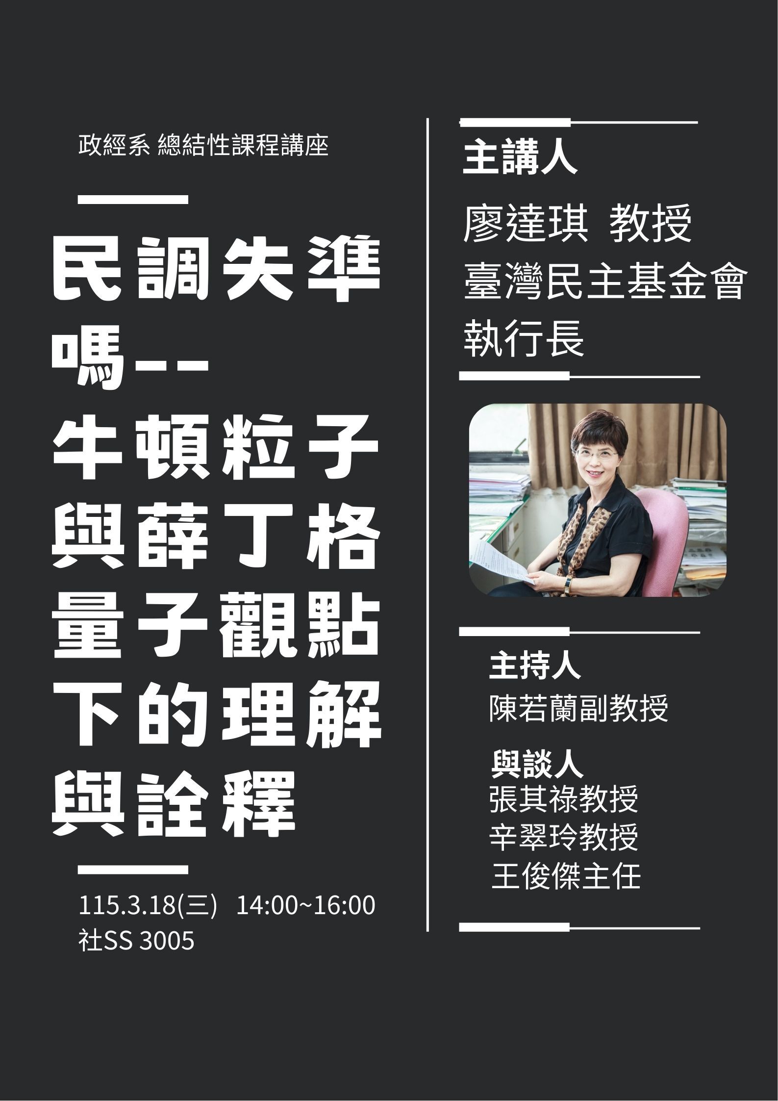 政經講座: 民調失準嗎--牛頓粒子與薛丁格量子觀點下的理解與詮釋